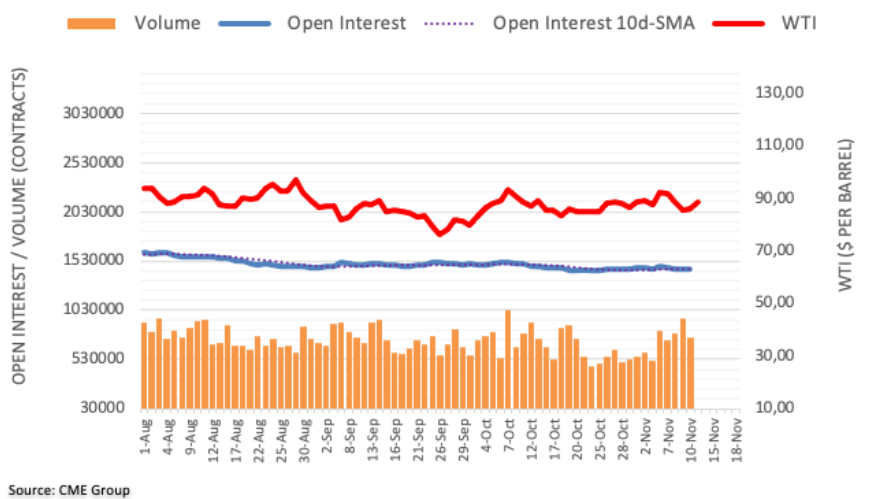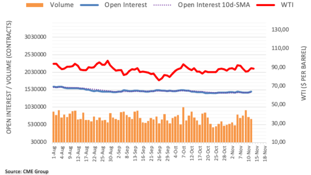 芝加哥商业交易所集团原油期货市场最新数据显示,週四交易员连续第二日增持其未平仓合约,此次仅增持924份。相反,成交量下降约19.12万份合约,结束两连增。 WTI原油:目标再度指向11月高点93.73美元 油价週四大涨,同时未平仓合约小幅增长,支持短期内油价继续反弹。展望未来,当前目标为11月7日高点97.73美元。