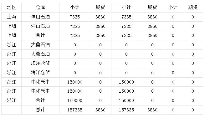 燃料油单位:吨 地区仓库期货增减 上海洋山石油38600 浙江中化兴中00 浙江海洋仓储00 浙江大鼎石油00 浙江合计00 保税商品总计38600 总计38600 注:1、期货为已制成仓单的货物数量。
