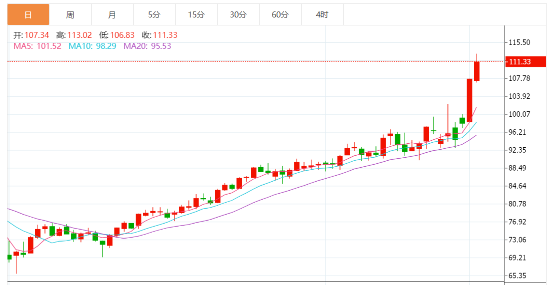 芝加哥商品交易所集团(CGrou)的原油期货市场数据显示,交易员周二削减了约5.53万份未平仓合约,这是自2021年3月19日以来的最大单日跌幅。另一方面,成交量增加了约90.73万份合约,这是连续第二个交易日增加。 西德克萨斯中质油:近期目标将指向112.00美元 周二,西德克萨斯中质油(WTI)价格大幅上涨,并迅速突破每桶100