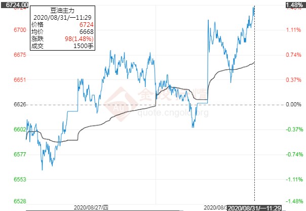 因飓风及高温干旱接踵而至令美国大豆产量或低于政府报告预估及中国需求强劲炒作令CBOT豆类期货价格连涨数日,叠加棕榈油产地库存累库压力减弱,央行持续放水令通胀预期再度升温,资金青睐与通胀联系紧密的农产品期货,这也提振油脂市场。豆油价格最新消息:上周五,连豆油期货价格强势击破6600关口再创新高,截止收盘,连豆油Y2101主力合约收报6648元,涨幅2.1%。今日盘中,豆油期货主力合约开盘报6630元,延续震荡走高态势,目前报6724元,上涨98元,涨幅1.48%。