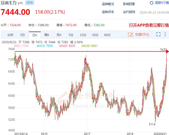 上周油脂价格“五连涨”,豆油行情表现“亮眼”,创近四年新高,棕榈油价格则逼近年初高点。分析人士认为,美豆上涨是近期油脂价格不断走高的主要原因。得益于中国强劲需求,美豆新作出口创历年同期最高,与此同时新作优良率下降,产区天气偏干不利于末期大豆生长,产量预期下调,供需双提振下美豆触及1040美分/蒲式耳。此外,双节备货旺季下国内油脂库存累库缓慢,油脂在油脂油料板块中涨幅最大。