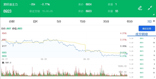 9月24日,伴随整个市场回调,油脂期货亦在其列,其中菜籽油期货连续三个交易日大幅收跌,且量能有所放大!后市如何?