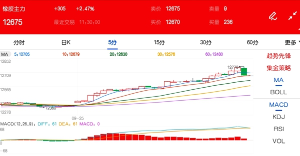 9月25日消息,国内商品期货午盘涨跌不一,橡胶、动力煤、沪银及苹果期货涨幅居前,其中橡胶主力涨逾2%领涨。截至收盘,橡胶主力合约涨2.47%,报12675元/吨。