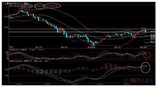 当然,若油价意外回升至布林线上轨57.30上方,则破坏短线看空信号。另外,5日均线56.42位置目前也存在一些阻力。
