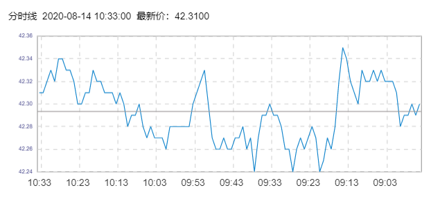 国际原油价格实时走势图(2020年8月14日)