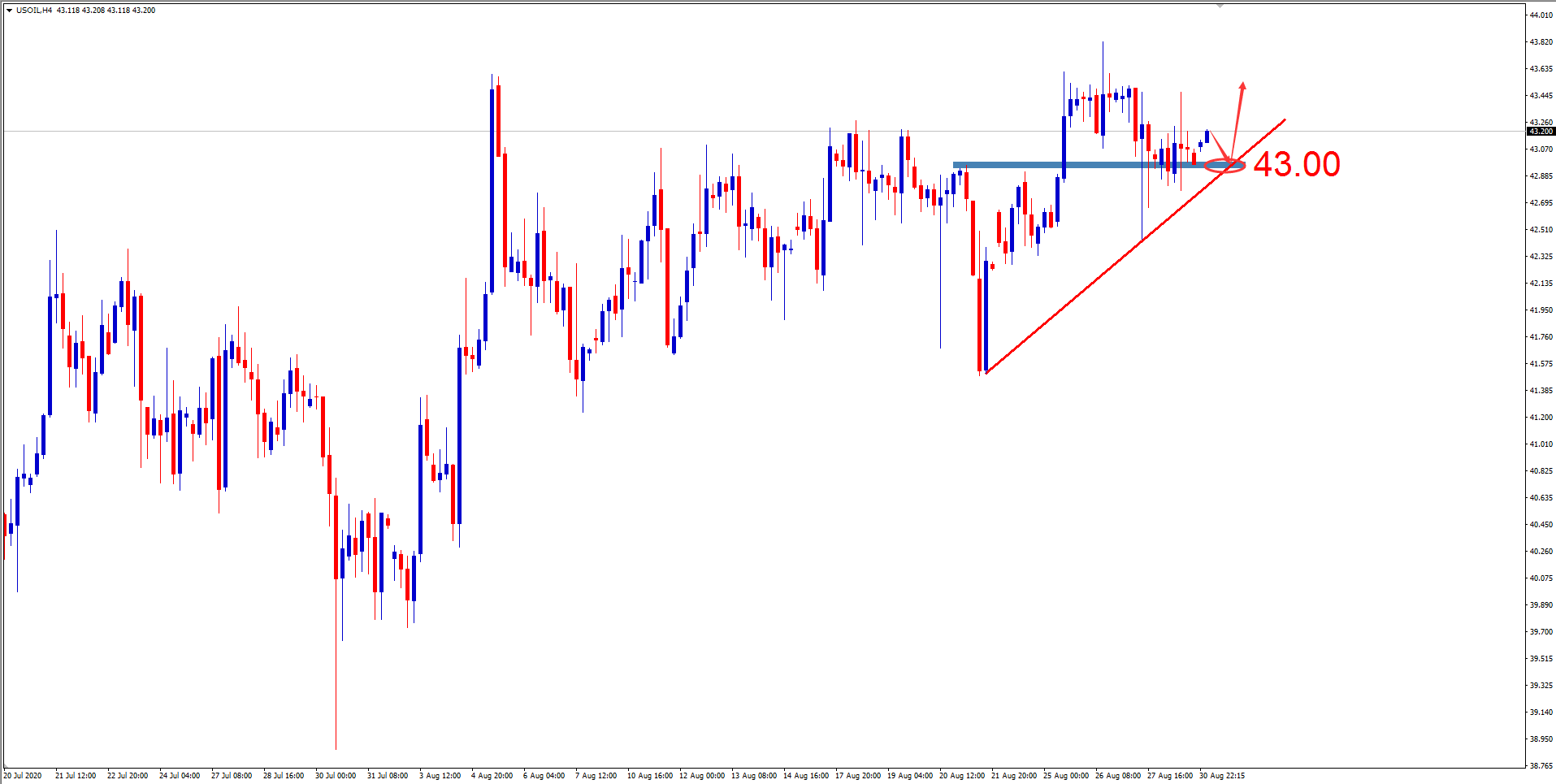 上周油价冲高受阻,美原油一度涨至43.82美元/桶,创下近期以来新高,这主要是美国飓风影响了美国的产能,而且美国EIA原油库存连续第五周下降,国际贸易局势传来利好消息,都给油价提供支撑;但由于飓风打击小于预期,全球新冠疫情持续,油价涨幅受限。