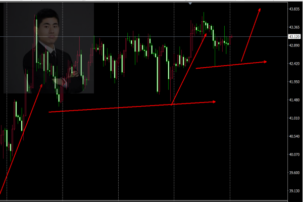 如图四小时级别显示,油价在7月30日触及38.7水平位置后,出现了一波强势上涨给到43.8水平,随后出现承压,价格在41.3-42.8区间运行两个交易周后触底反弹,油价再次走高43.7水平承压,目前油价回踩应该是对于这波上涨走势的调整。综合来看莫千机认为若油价回踩不下破下方支撑,大概率将出现新一波上涨走势,今日操作上考虑回撤布局多单为主,下方关注42.6-42.3美元支撑,上方关注43.8-44.0美元支撑。