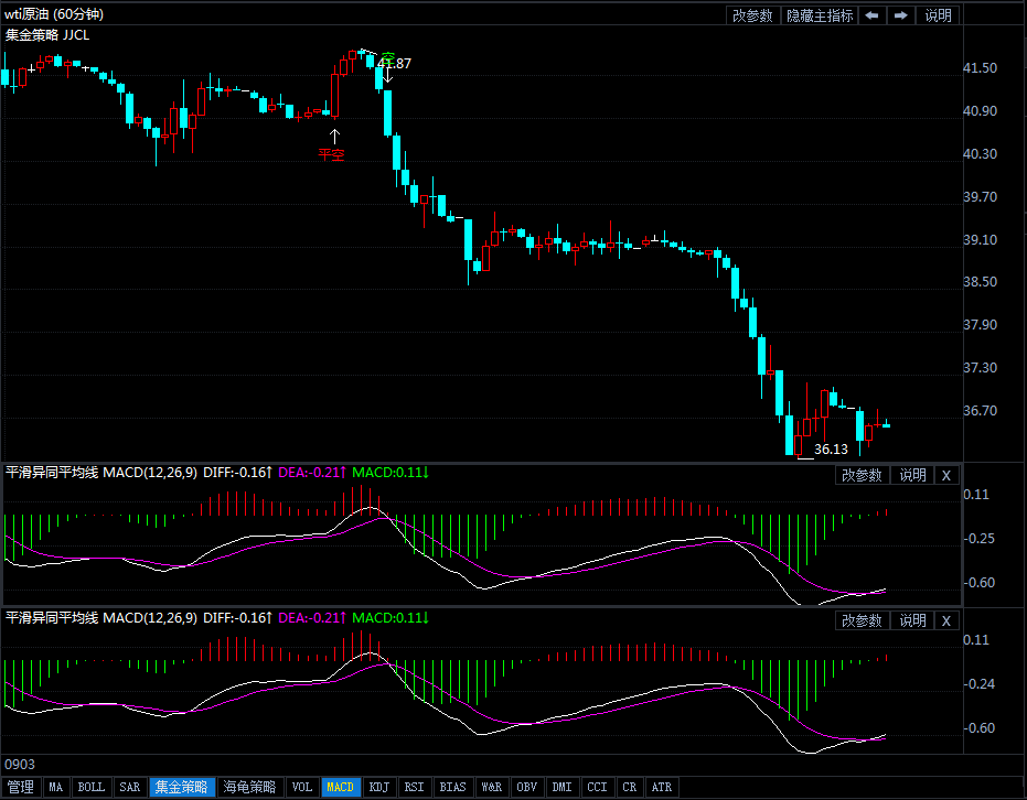 从小时图来看,国际原油开市39.397美元,国际原油触及39.572美元受阻MA均线,国际原油承压MA均线再次下行运行空头趋势,国际原油下方关注36美元,目前的走势偏空运行,MA均线粘合形成死叉下行,小时附图指标MACD红色上涨的动能衰竭,DIF与DEA粘合有望形成死叉的需求,4小时图来看,国际原油连续三个周期的下跌延续空头趋势,处于低位震荡波幅,国际原油依然承压MA均线下方波幅,4小时附图指标MACD蓝色下跌动能逐渐衰减,DIF与DEA粘合形成死叉处于0轴下方波幅。