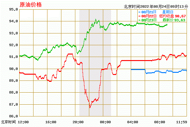 WTI原油走势图_WTI原油价格实时(2022年8月24日)
