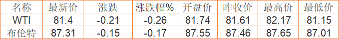 备注:以上国际原油价格仅供参考,请以官方价格为准。(亚汇网编辑:陌尘)