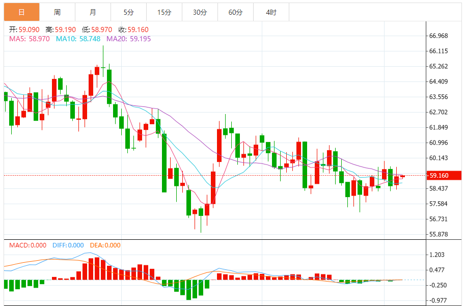 12月5日,周五亚市盘中,原油交投59.39附近。随着乌克兰对位于俄罗斯中部坦波夫地区的德鲁日巴输油管道发动攻击,该管道向匈牙利和斯洛伐克供应能源产品,油价上涨,此时莫斯科主要石油公司俄罗斯石油和卢克石油已面临制裁压力,引发了供应担忧。 原油周四被推至10日高点60.10美元,直接挑战50日均线60.13美元附近的阻