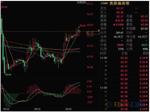汇通财经易汇通软件显示,北京时间11:56,NYMEX原油期货上涨0.63%至62.40美元/桶;ICE布伦特原油期货上浮0.53%至72.15美元/桶。