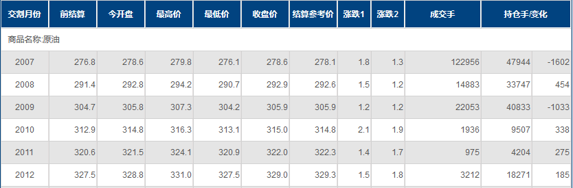 期货合约和成交情况一览