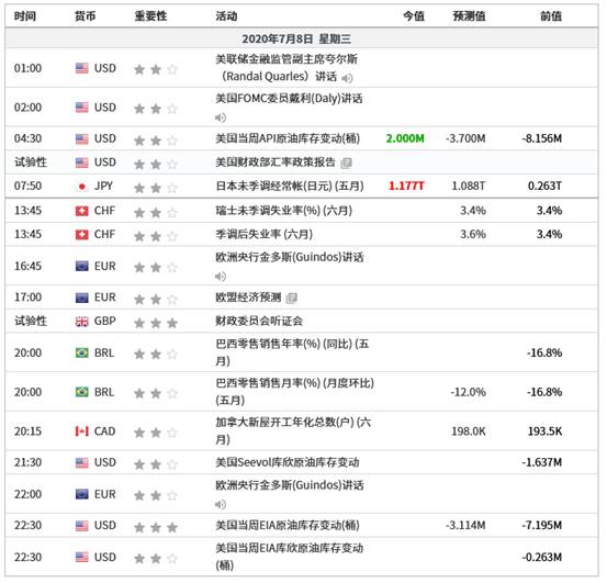 还值得关注的是,虽然没有特意减产,但由于储备容量将耗尽,伊朗的原油产量跌至近40年来低位。行业数据显示,由于出口下降,加上疫情导致炼厂减产,伊朗6月原油产量降至190万桶/日,为1981年以来最低水平。伊朗陆上原油总库存从1月的1500万桶激增6月的6300万桶,约占总储存容量的85%。今晚22:20将公布美国至7月3日当周EIA原油库存,前值为大减719.5万桶,预期值为减少340万桶。不过今日凌晨公布的API库存意外录得增加,若EIA库存也录得增加,恐打击油价。