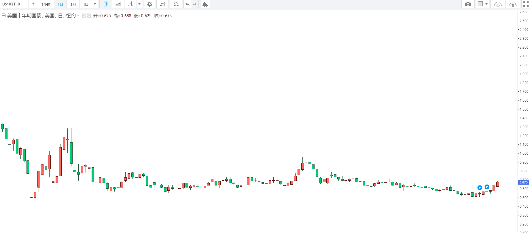 事实上,隔夜黄金、白银等贵金属的反弹较油价更为明显,其中黄金触及三周低位1862美元后大幅盘中大幅反弹逾4%,几乎收复日内全部跌幅;白银则自低位反弹逾11%至26.0上方;美元指数回落至93.43附近修整;十年期美债收益率则进一步攀升至五周高位0.688%。