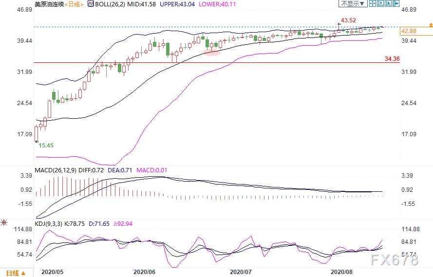 上行方面,先留意前高43.52;强阻力在3月4日高点48.66附近。此外,简单留意3月6日高点46.38。
