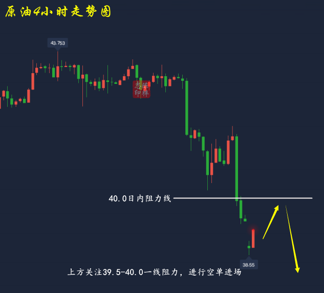 39.5-40.0附近进空,止损0.4美金,目标看38.0-38.5附近;