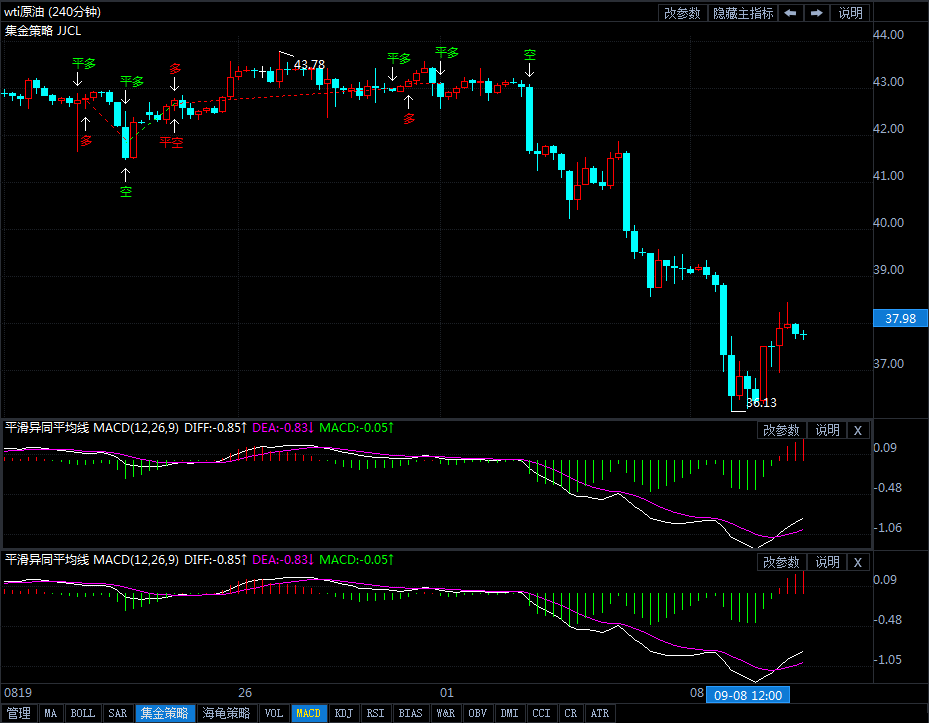 原油走势分析:原油从日线上来看,昨日呈现极度弱势状态,承压5日线再度大幅回落调整,日线结构上,已经是很明确的单边下跌状态,目前指标是超跌状态,行情连续5个交易日连续大幅下跌后也可能会有超跌反弹需求,但是去操作的风险是比较大的,四小时来看,布林带三轨开口向下,且下轨支撑也早已破位,在加上布林带缺口也在不断扩大,底部支撑也在不断降低,目前看不到底部支撑在哪里,各项指标空头排列。日线图来看,MACD死叉、绿柱动能持续放量,KDJ死叉;布林带略微开口,油价连续第四个交易日走低并失守下轨。