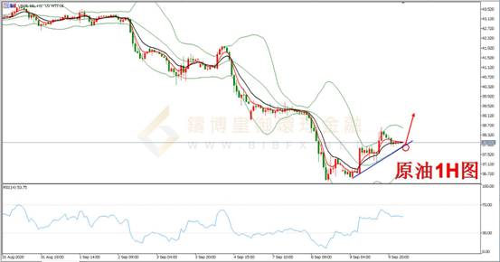 美原油一小时周期从形态上看美原油在36.40附近企稳油价重回布林带中轨上方运行且形成短期的上升趋势线考虑到37.70附近为趋势线及布林带中轨支撑位置原则上在下破37.70的支撑之前低多思路为主企稳后将重新向上测试39.00压力位上破后将进一步看向40.00整数压力位但若油价选择下破37.70支撑则将重新向下测试36.40附近的支撑下破后将看向32.00的支撑位;操作上今日可以在37.70附近做多原油。