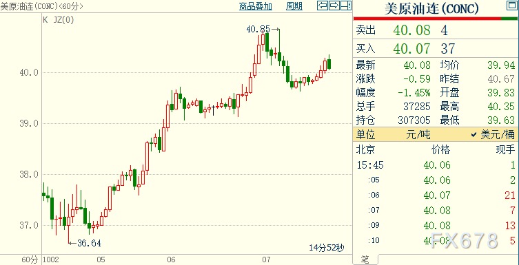 NYMEX原油期货下跌1.50%至40.06美元/桶;ICE布伦特原油期货下跌1.17%至42.15美元/桶。