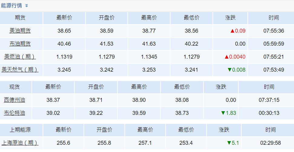 12月交割的西德州中级原油(WTI)期货下跌1.29美元,收于38.56美元。12月布兰特原油期货下跌1.31美元,收于每桶40.46美元。