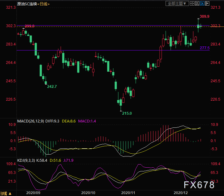阻力位:INE原油310,美油50