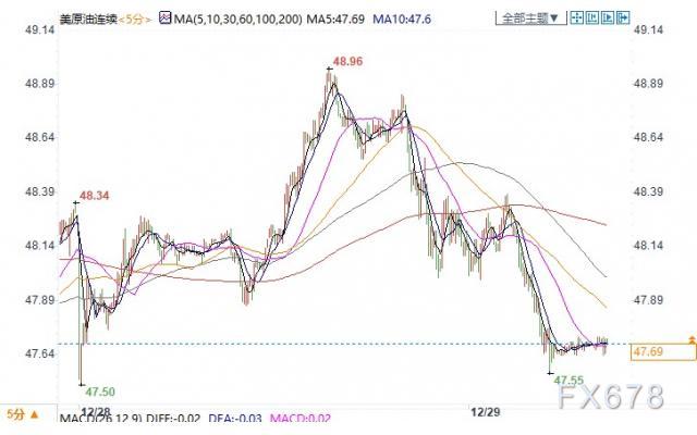 美国WTI 2月原油期货电子盘价格周一(12月28日)收盘下跌0.54美元,跌幅1.12%,报47.69美元/桶。油价周一下跌,因对燃料需求减弱和OPEC+产量增长前景的担忧超过了对美国经济刺激计划的乐观情绪。