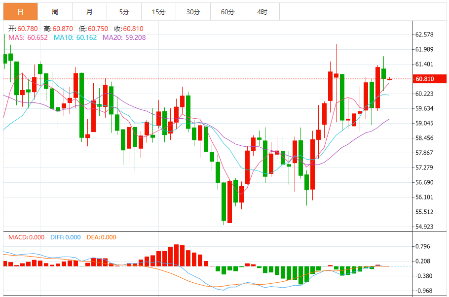 交易逻辑:油价周一冲高回落,并录得长上影大阴线,因连续几日的大涨之后多头开始获利了结,日内可能延续上一日跌势,投资者暂时可以观望。
