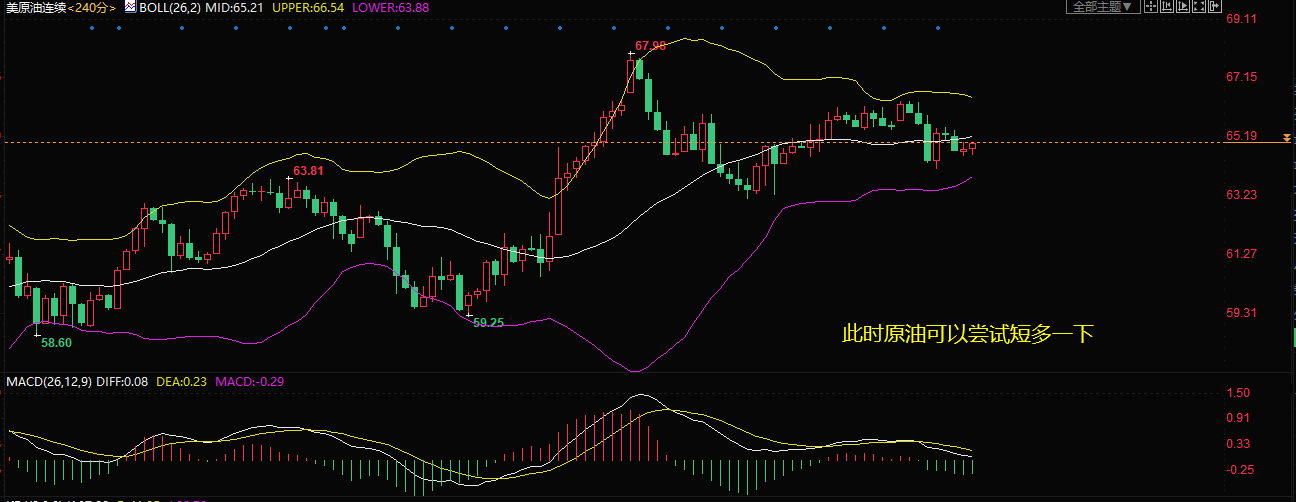 美原油激进者现价(64.50做多,上方看至66美元即可,止损63.80