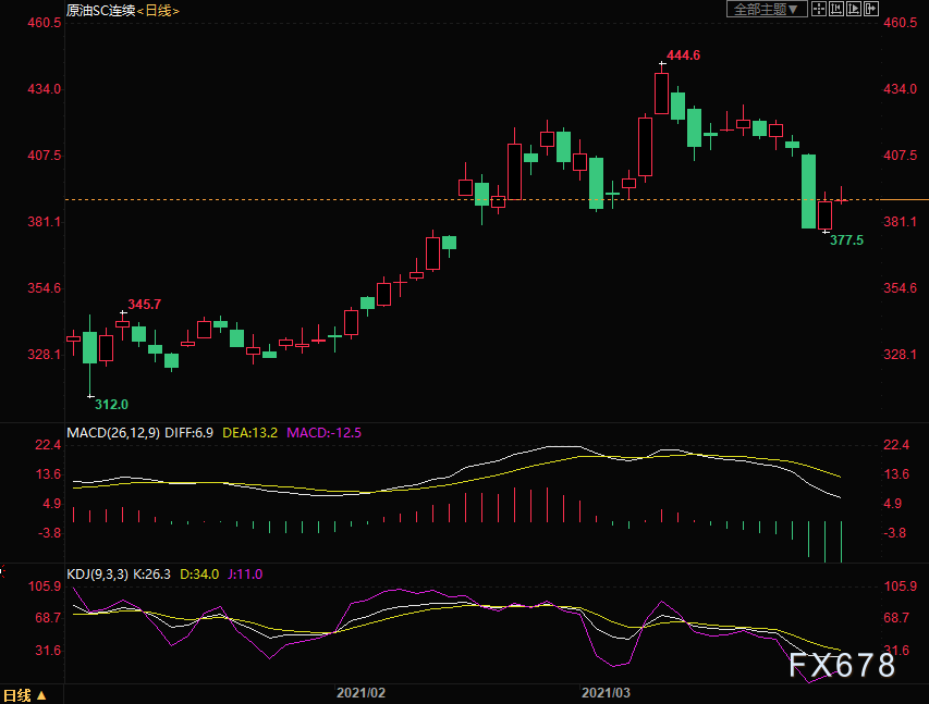 支撑位:INE原油377.5,美油60.00