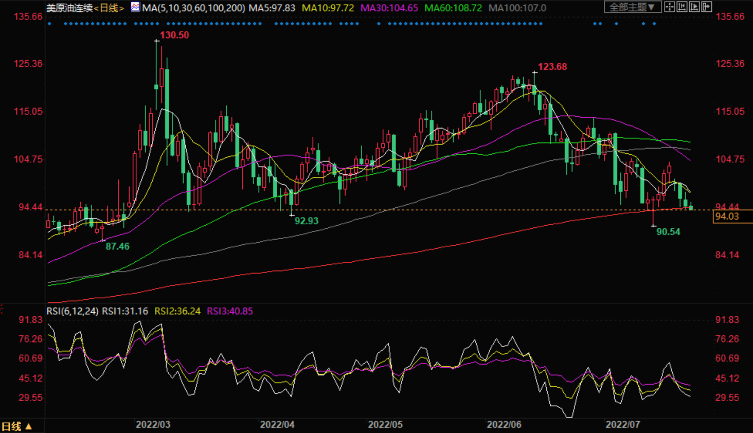 周一亚盘,美油微涨,现报95.54美元/桶,尽管油价上周五跌超1.6%,因欧盟允许俄罗斯向第三国转售俄石油,缓解全球能源安全风险,猴痘疫情也为空头助力,但地缘紧张局势升级,俄乌停战似遥遥无期,依然支撑油价。