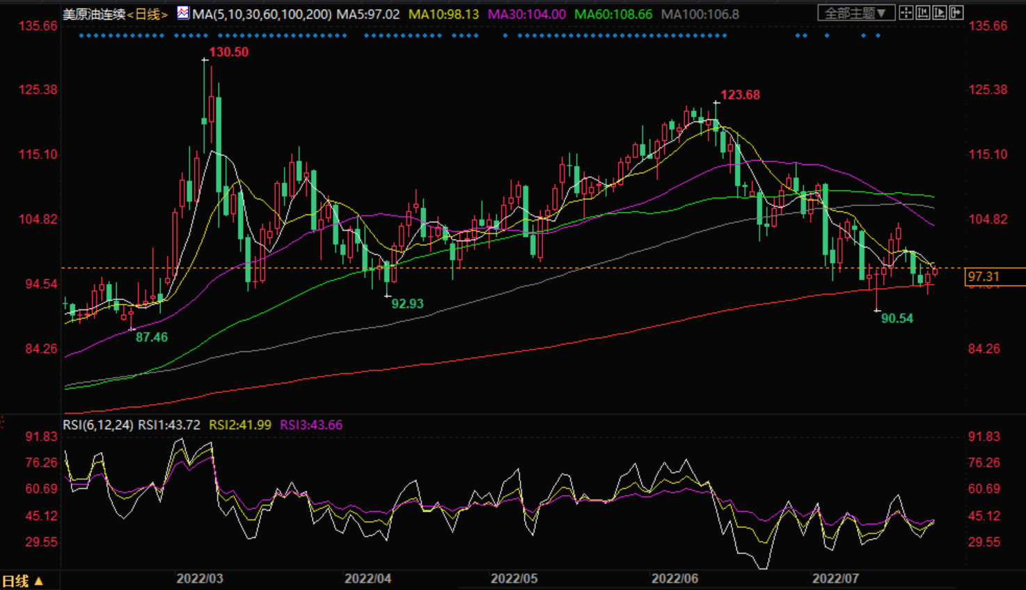 周二亚盘,美油交投于96美元/桶附近;油价周一上涨超1.5%,受益于俄罗斯进一步削减通过北溪一号天然气管道输送的天然气供应,同时美元下跌和股市早盘走强也为油价提供支撑;但对美联储过于激进地加息预期,经济衰退担忧或引发燃料需求可能减弱,油价涨幅有限。