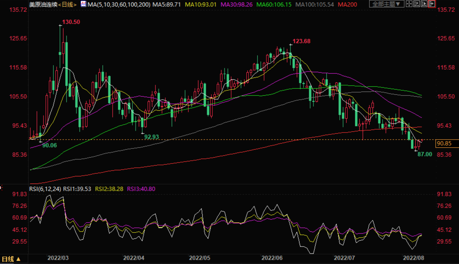 如果西德克萨斯中质原油价格继续疲软,跌破81.70美元,80美元的整数价格以及2021年12月初在73.70美元附近的高点应该会吸引看空石油的投资者。