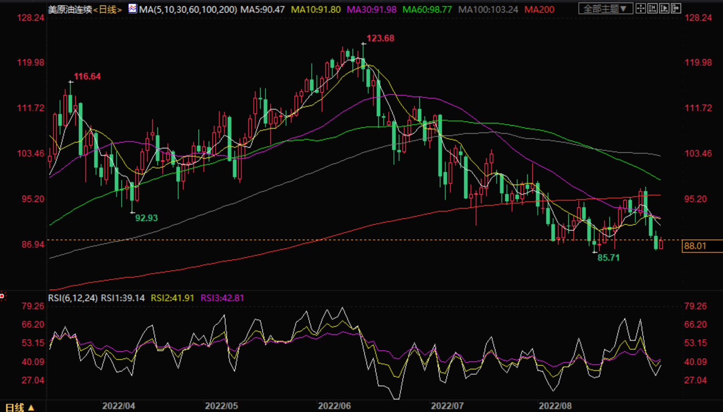 据路透社报道,“石油输出国组织(OPEC+)及其盟友将于9月5日召开会议,以应对油价下滑和需求下降的背景,尽管最大的石油生产国沙特阿拉伯表示供应仍然紧张。”该消息还提到,OPEC+本周下调了其需求前景,目前预测2022年需求将落后于供应40万桶/天,但预计2023年的基本情况下市场缺口为30万桶/天。