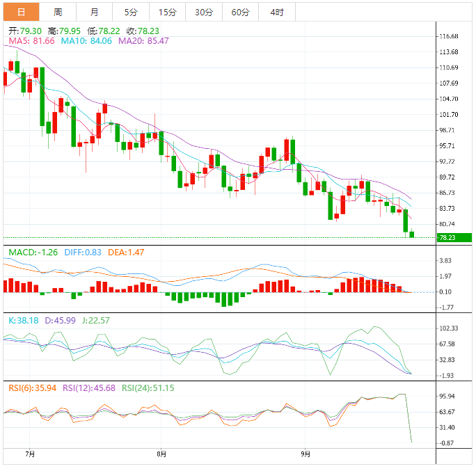 然而,超卖的相对强弱指数(14)和六周下跌楔形的下线可能在77.70美元附近挑战空头。