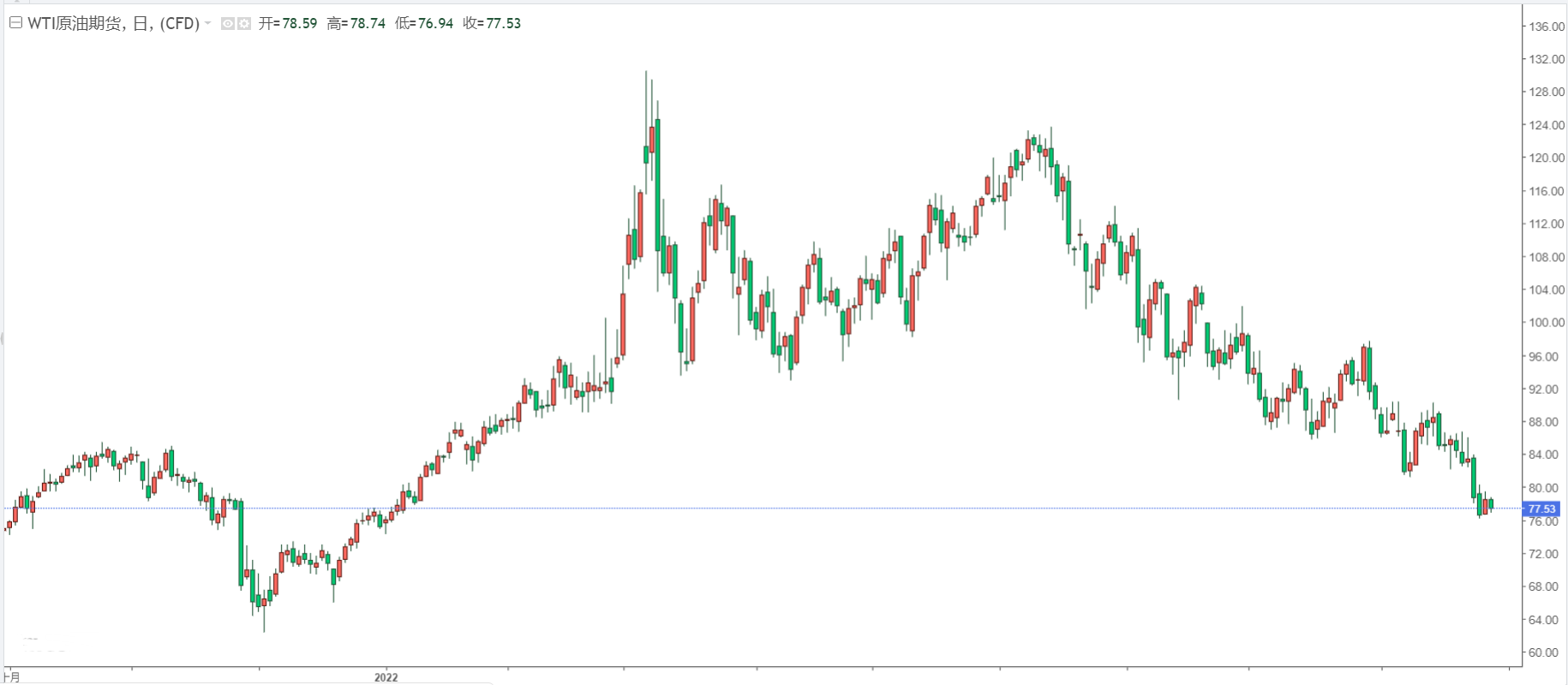 也就是说,原油可能会重新测试上述的支撑线,最晚接近75.20美元。