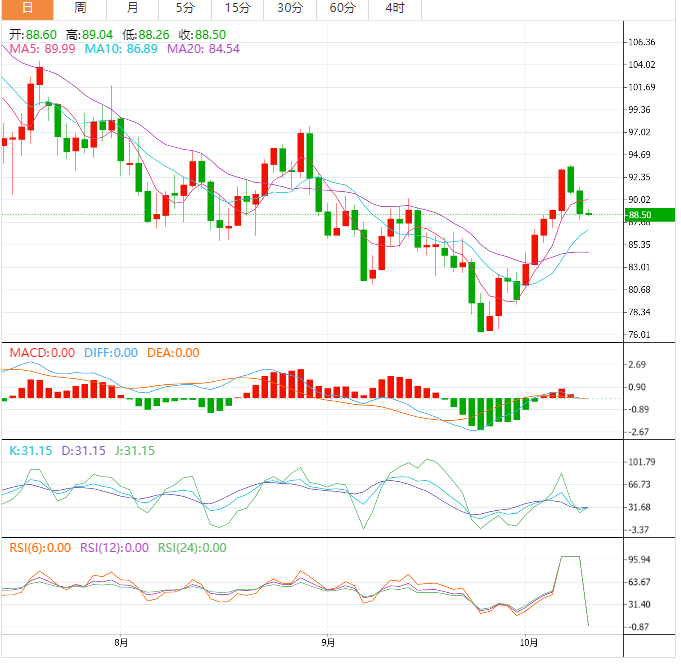 周三盘中,美油交投于88.65美元/桶附近;油价周二回落近2.5%,因为经济衰退的担忧和疫情蔓延引发了对全球需求的担忧,IMF就增长放缓和市场风险增加发出警告;油价也受到了强势美元的压力,同时,美国称或在未来数周或数月根据需要动用战略原油储备来对抗高油价。