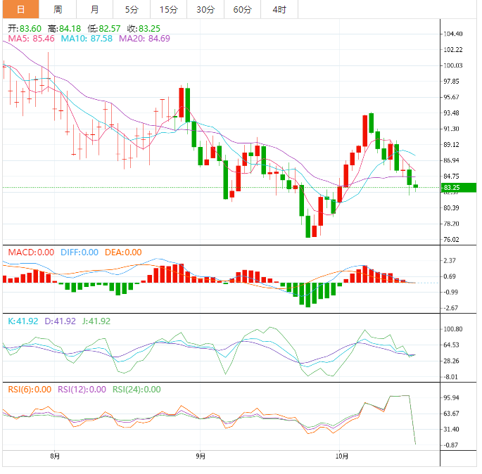 斐波那契回撤工具显示了附近的阻力位。50%的水平似乎被守住了,作为阻力在通道的中间区域,可能会把原油送回每桶82美元的波动低点,或者下一个通道底部。