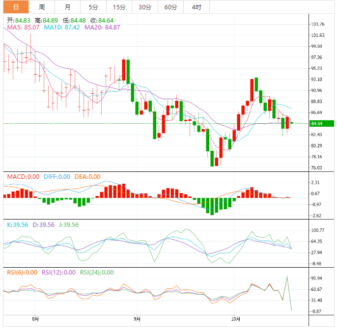 周四亚盘,美油交投于84.76美元/桶附近;油价周三上涨超2.5%,因对供应收紧的谨慎态度抵消了不确定的需求以及美国将从其储备中释放更多原油带来的负面影响,上周美国原油库存意外下降,美国柴油需求激增,而美国只有25天的柴油供应量,为2008年以来最低。