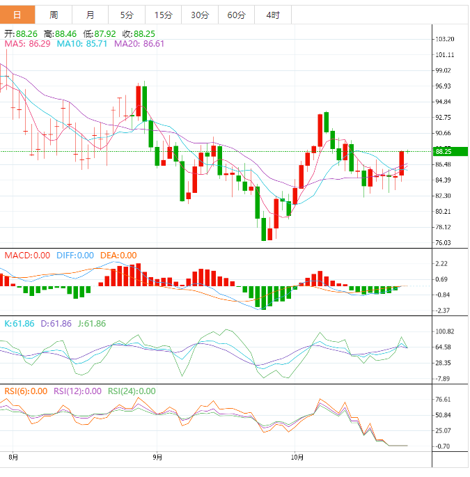 技术面:突破200日线可能会让92.42点的高点受到考验,而在触底情况下可能会突破。