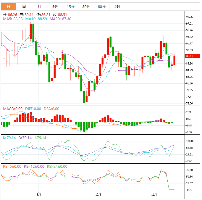 斐波那契回撤工具显示,50%的水平与89.40美元/桶左右的破碎通道支撑位一致。这也接近移动均线周围的动态阻力。