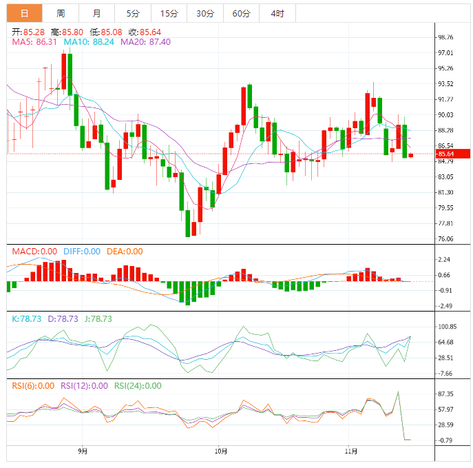疫情担忧再起拖累油价,OPEC自4月来第五次下调今年石油需求增长预测,还进一步下调明年的增长预测,进一步为空头助力,油价短线空方力量强劲。