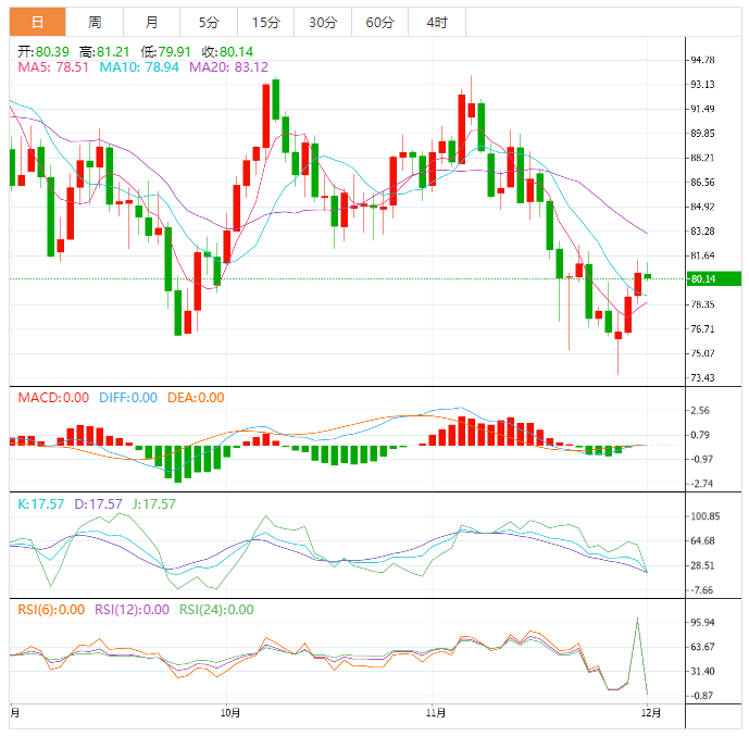 原油价格已经接近38.2%的Fib,在81.51美元/桶附近,接近中线感兴趣区域和100移动移动平均线的动态阻力。更大的回调可能会达到接近每桶84美元的50%水平,或者达到61.8%的Fib水平,每桶86.26美元。