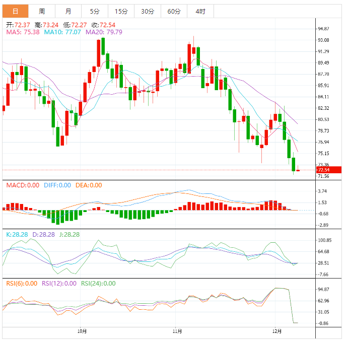 更高的回调可能达到移动平均线动态阻力位附近的50%斐波那契水平,或者接近每桶78.50美元的61.8%水平。