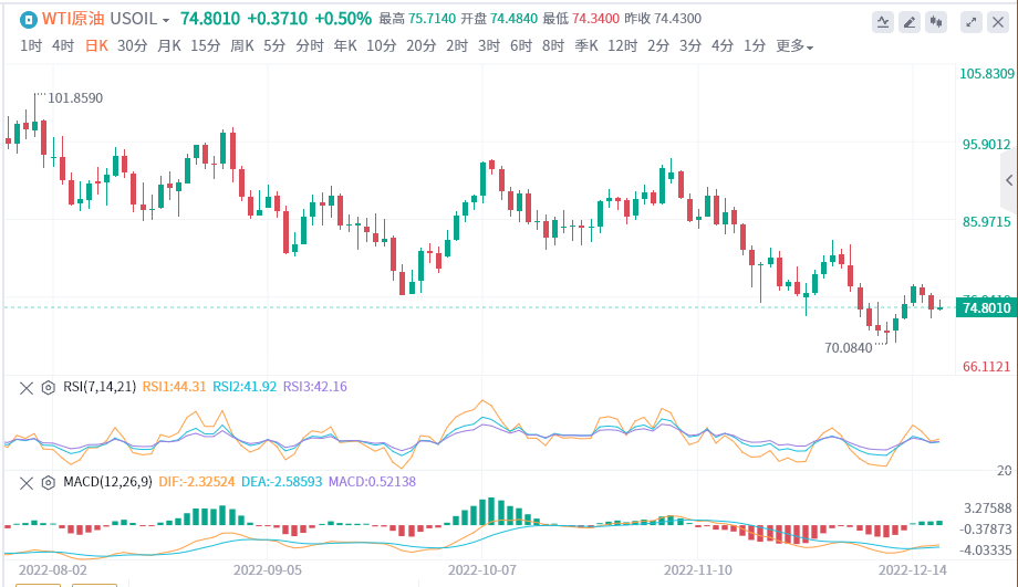 阻力位为76.55美元,突破该水平可能涨至77.62-78.94美元区间。