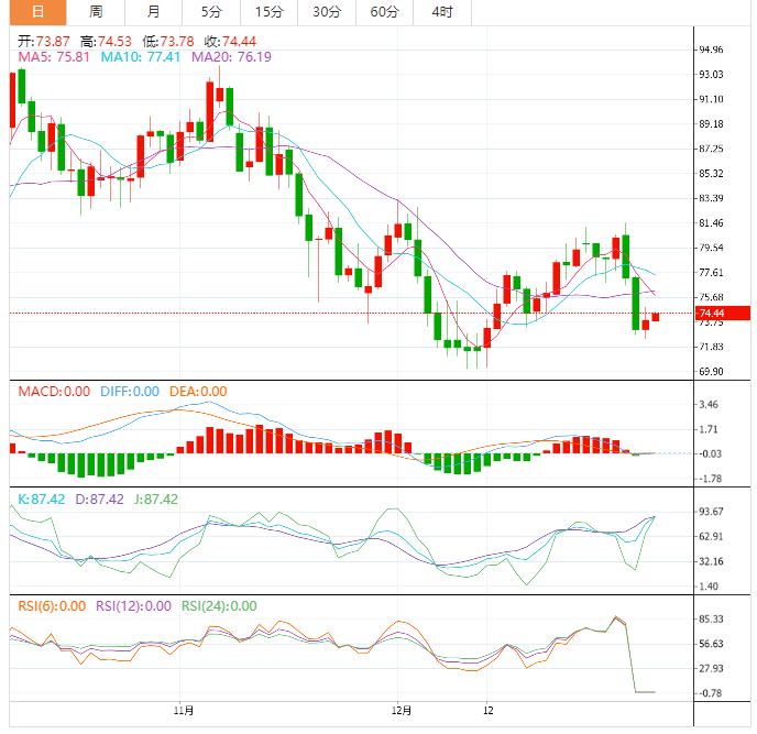 周五盘中,美油交投于74.40美元/桶;油价周四上涨近1%,美国数据显示燃料库存下降提供了支持,而经济担忧则限制了涨幅。美国最大管道运营商Colonial Pipeline发表声明,称其3号管道因计划外维护关闭,预计1月7日重启,这对价格构成支撑。