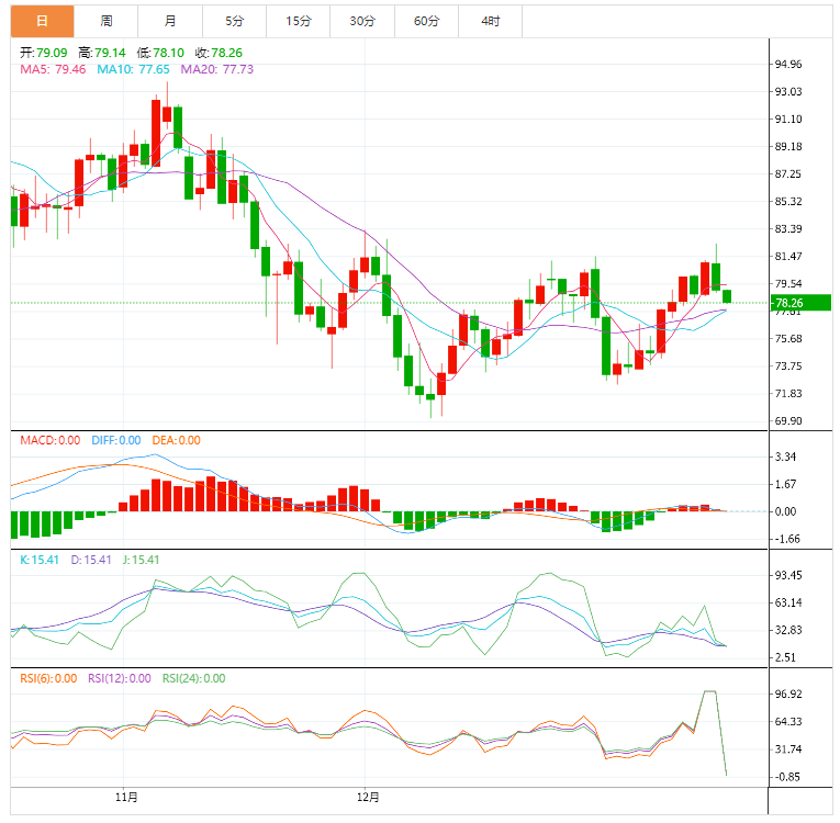 应该观察到,相对强弱指数正在向超卖区域下降,因此报价很难跌破76.80美元。