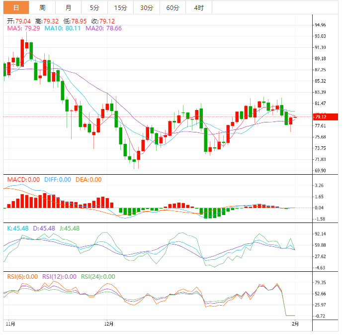 虽然50日移动均线为77.80美元附近的油价提供了底部,但看跌的MACD信号和稳定的RSI(14)未能让报价反弹。原因可能与原油持续在关键障碍下方交易有关。