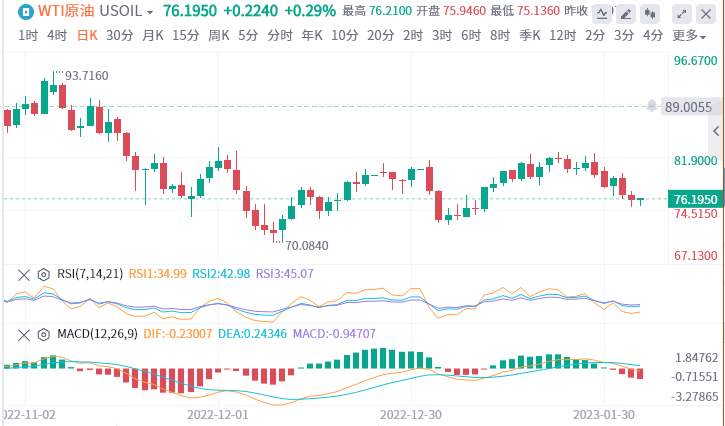 至少,油价可能在74.87-76.77美元/桶的区间内盘整一两天,然后再次下跌。如果跌破74.87美元/桶,可能会打开通向73.80美元/桶的通道。