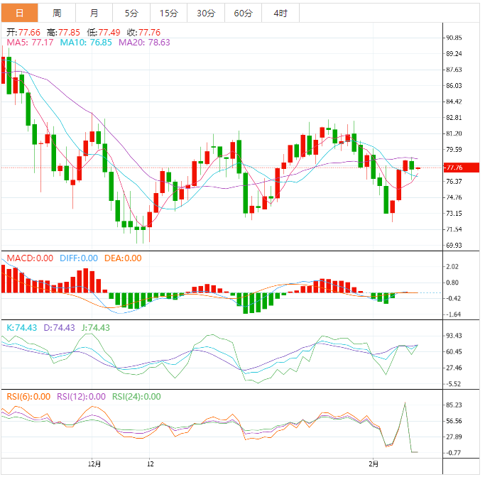 周五亚洲时段,美油交投于77.75美元/桶附近;油价周四回落,因石油基础设施似乎在土耳其和叙利亚部分地区地震造成的严重破坏中幸免,且美国库存增加,投资者担心美联储加息。